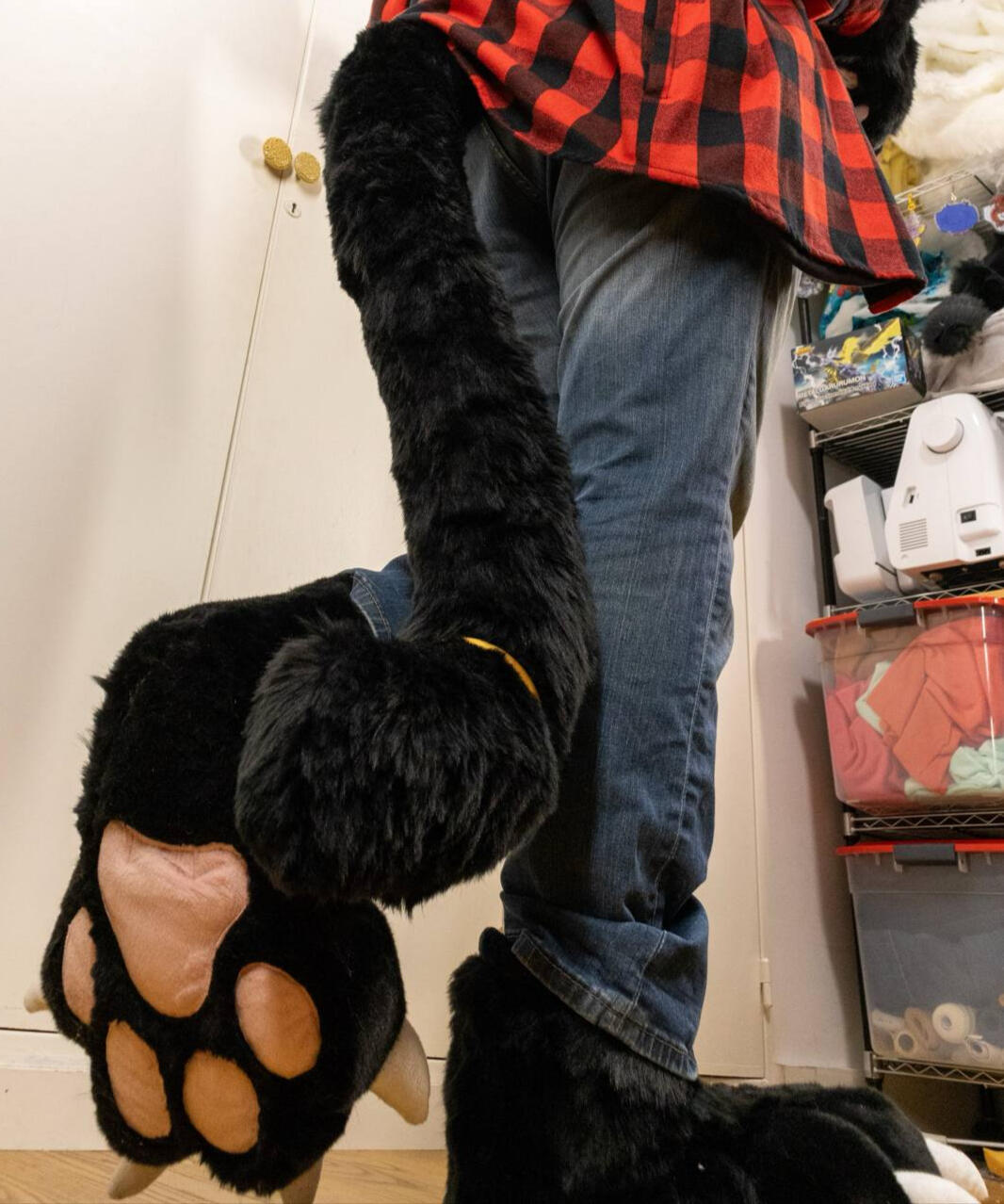 For the body we recommend using a plastic dress cover that can be closed, you can also place the foot paws and hands inside.TransportationAlthough they are not recommended, vacuum bags are convenient for travel. They can be used to compress the entire suit except for the head. (Before returning from a trip, at your destination hotel ask room service for a vacuum cleaner) TIP: Place a small towel under the valve to avoid the fur obstructing it. If there is no vacuum cleaner, you can use your body weight.Do not leave your suit inside a vacuum bag for more than the time strictly necessary to move it.Always transport your suit head in a carry on or as a personal item with you in the passenger cabin.At the end of a leg of your trip and especially if you used vacuum bags, brush your suit and let it air out.MaintenanceAlthough we make our suits to last, accidents happen and if something like this occurs, don't worry.After prolonged use or when returning from a trip, it is always good to examine the suit carefully for holes or tears. (Hands, finger joints, and other spaces that cover joints or are often pulled tend to be prime suspects.)If the hole is small and you are skilled at sewing, always use nylon thread for sewing. Cotton thread -which usually comes in simple sewing kits- is very fragile and is not ideal for the weight of your fursuit fabrics or the tensions they suffer.Keep in mind that if you make any seams, make sure to brush them along and in the direction of the fur, so that they become hidden, otherwise they will be very noticeable.If the tear or hole is large, contact us so we can help you.If the tail attached to your bodysuit starts to look flattened, you can add more silicone fleece as padding to restore its shape. (it is very cheap and can be easily purchased online)Avoid using HOT AIR to dry your head as both the mesh and the structure of the eyes are very sensitive to high temperatures and can be ruined.Washing your Body, Hands and PawsWe do not recommend washing the suit after each single use. Frequent washes can affect the resistance of the fabrics. You should only wash the suit when you think it is convenient to do so or when it looks visibly dirty.It can be washed by machine with cold water and only using a little of soap, otherwise soap residue may remain and that causes the fur to be sticky to the touch. (in that case, put the suit back in the washing machine and run a quick rinse program without soap)If possible, it is advisable to dry the suit in the sun and comb/brush it from time to time so that the fur does not get tangled or wrinkled.